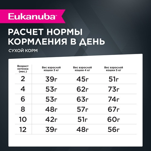 Сухой корм Eukanuba Kitten Healthy Start для активных котят - полнорационный корм, который содержит все необходимые для здорового роста питательные вещества, включая докозагексаеновую кислоту (ДГК), поддерживающую развитие мозга.