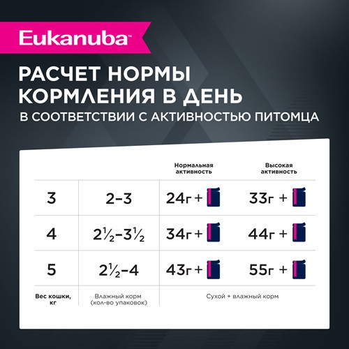 Влажный корм Eukanuba Top Condition для взрослых кошек старше 1 года с кроликом в соусе при ежедневном употреблении обеспечивает оптимальный уровень энергии, помогает поддерживать здоровый вес и снижает риск развития заболеваний мочевыводящих путей у вашей активной кошки